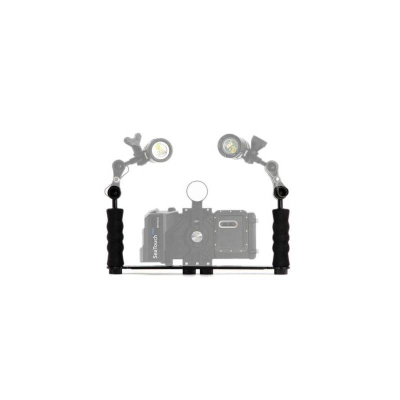 La platine double bras permet d'assurer une très bonne stabilité du caisson pour téléphone mobile DIVEVOLK SeaTouch 3 Pro et SeaTouch 4 Max