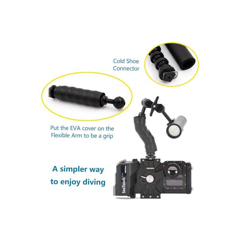 Le bras flexible se fixe directement sur le caisson DIVEVOLK Seatouch 3 et DIVEVOLK Seatouch 4.