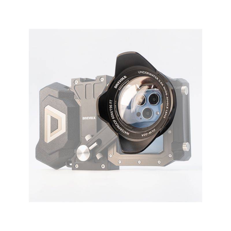 Le grand angle se fixe sur un adaptateur M67 DIVEVOLK et sa fixation pour le caisson DIVEVOLK SeaTouch 4 Max