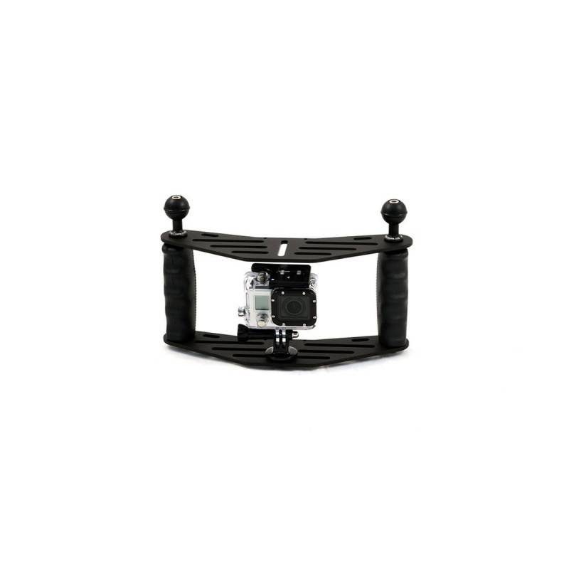 Double plateau 25 en aluminium anodisé anticorodal, doté de fentes et de trous pour le montage des poignées et des caissons. Le plateau supérieur a une double fonction: la première consiste à protéger le boîtier contre les chocs et la seconde à servir de support pour des accessoires supplémentaires. Le double plateau est complet avec 2 poignées IM / SF avec rotules. L'adaptateur GoPro et la caméra GoPro ne sont pas inclus.