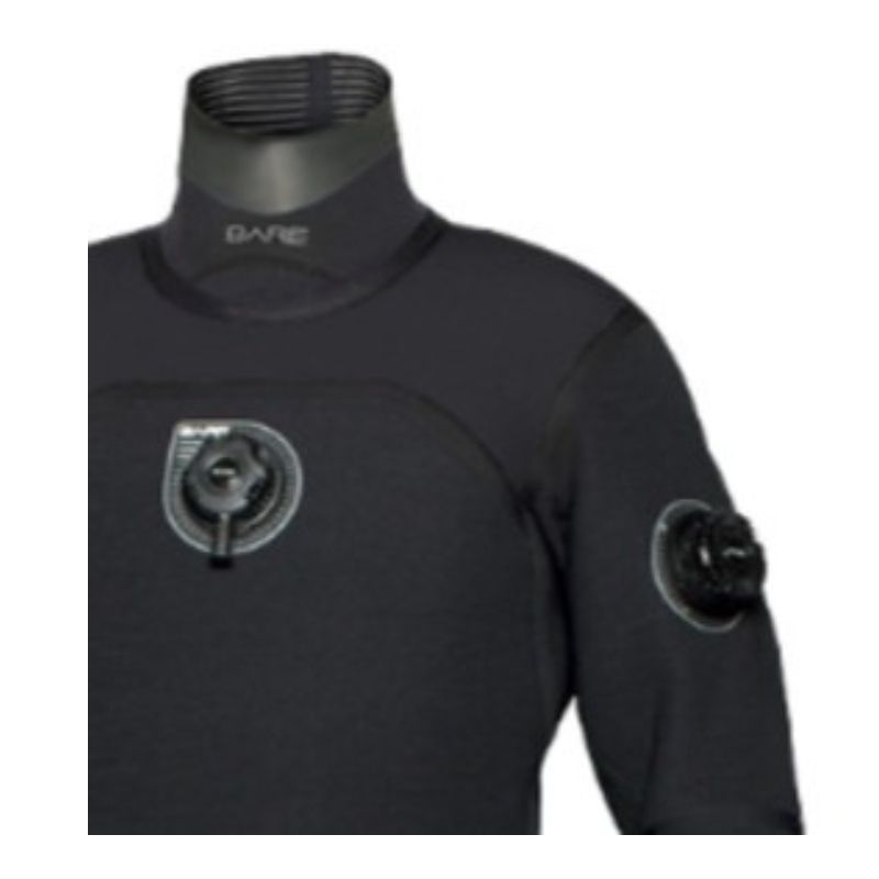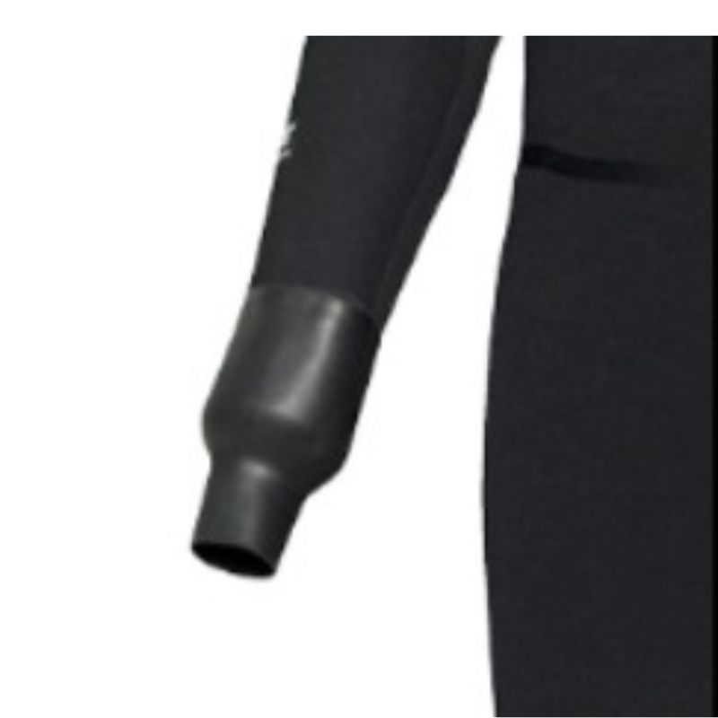 • Col chaud en nylon/peau lisse de 2 mm avec drain de cou ventilé : améliore l’étanchéité et assure une parfaite compatibilité avec la capuche sèche BARE.