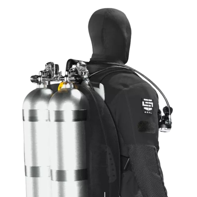- Poches aérodynamiques et fonctionnelles : les poches de grande capacité, fabriquées en Cordura allemand, sont conçues pour être idéalement situées et rester plates le reste du temps. Elles sont un élément clé pour les plongeurs spéléologues.