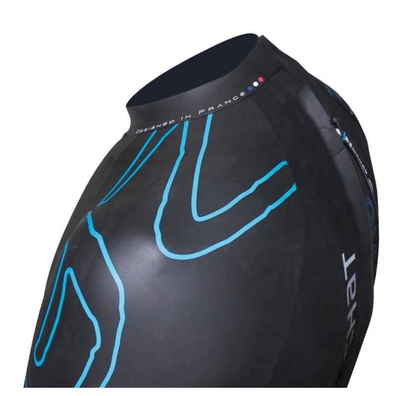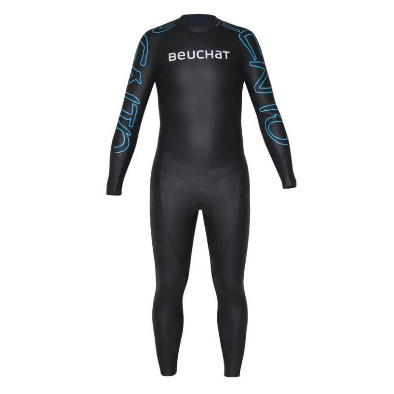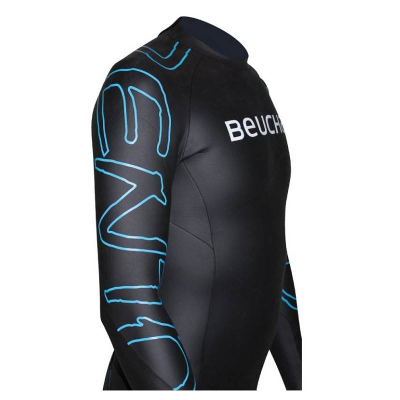 Un nouveau patronage Beuchat spécialement conçu pour les vêtements d'apnée et de nage en extérieur a été créé. Il comprend une combinaison en néoprène Elaskin de 2 mm avec des assemblages parfaitement étanches, collés bord à bord et surjetés à l'intérieur pour une meilleure hydrodynamique. La coupe anatomique ajustée offre une grande liberté de mouvement.