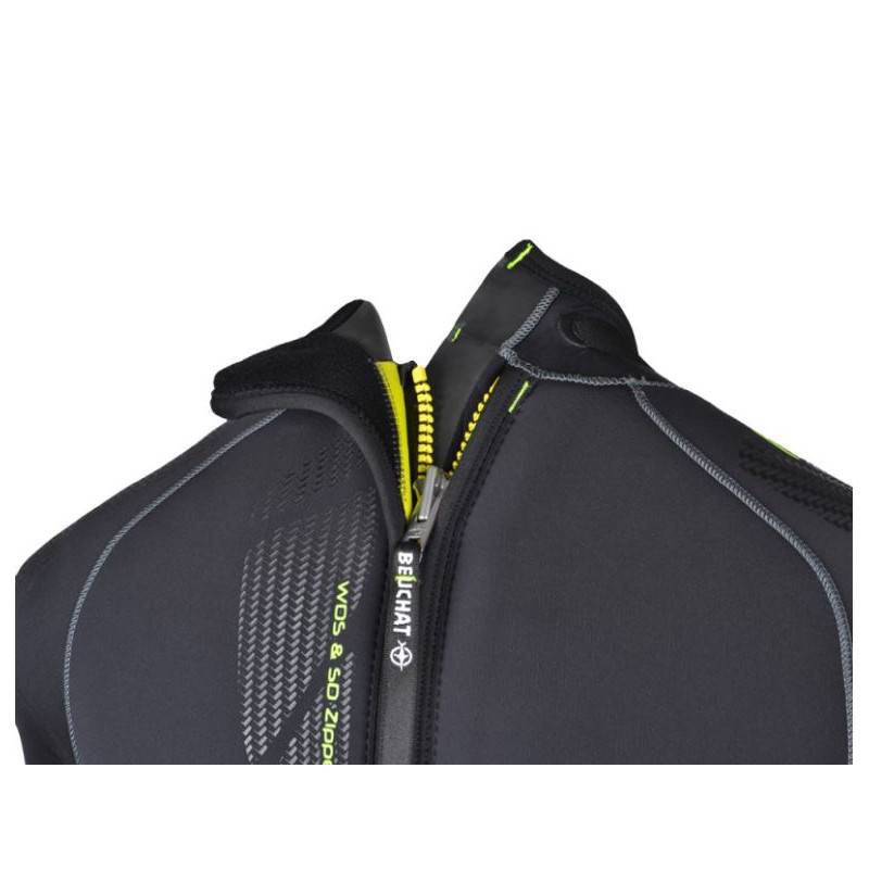 - Grand zip d'aisance au niveau de la glotte équipé d'un soufflet tendu Elaskin intégrant une coupe anatomique sur la monopièce sans cagoule pour un meilleur confort. Grand Zip dorsal « G-Lock plus » (monopièce col) avec curseur métal et sous-patte au profil embossé Water Dam System pour une étanchéité accrue (brevet Beuchat) Zip poignet et cheville Renforcement du néoprène à l'extrémité de tous les Zips pour éviter tout risque de déchirure si le plongeur force en tirant sur les curseurs.