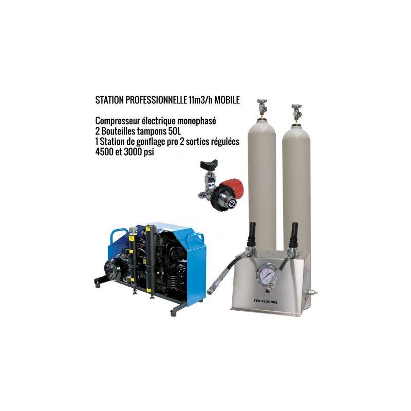 - 1 station de gonflage professionnelle inox 2 sorties régulée (1 sortie 4500 psi et 1 sortie 3000 psi). Possibilité d'avoir 2 sorties 3000 psi