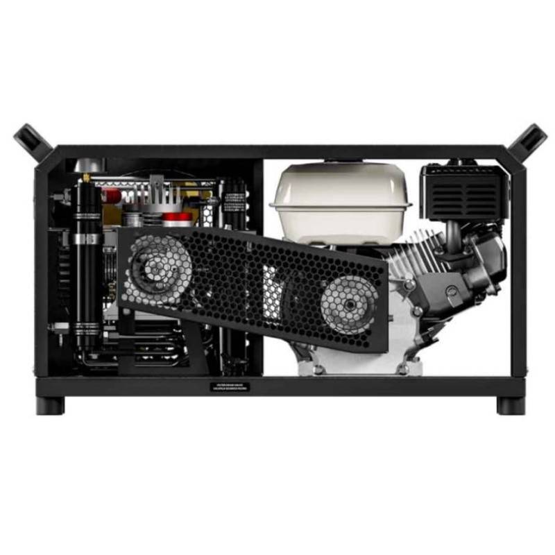 Le châssis mécano soudé de la gamme COMPACT est entièrement caréné pour protéger la machine des chutes d'objet et de protéger l'utilisateur. Il intègre le moteur Honda, le bloc de compression, le système de filtration et une sortie flexible avec raccord de gonflage DIN ou étrier. Le compresseur est équipé de plusieurs systèmes de filtration pour assurer une qualité d'air conforme aux exigences de la norme EN 12021 :2014.