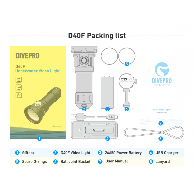 Le DIVEPRO D40F est un phare de plongée vidéo conçu pour les vidéastes sous-marins.