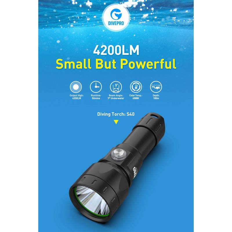 Phare de plongée DIVEPRO S40 4200Lm - 9°