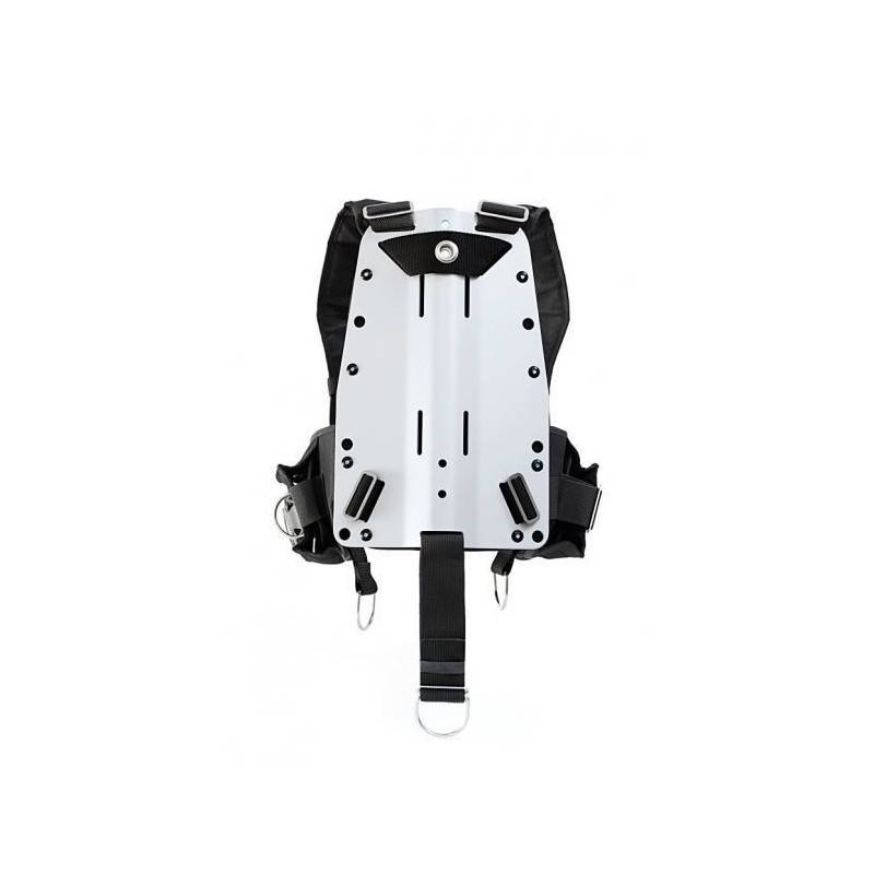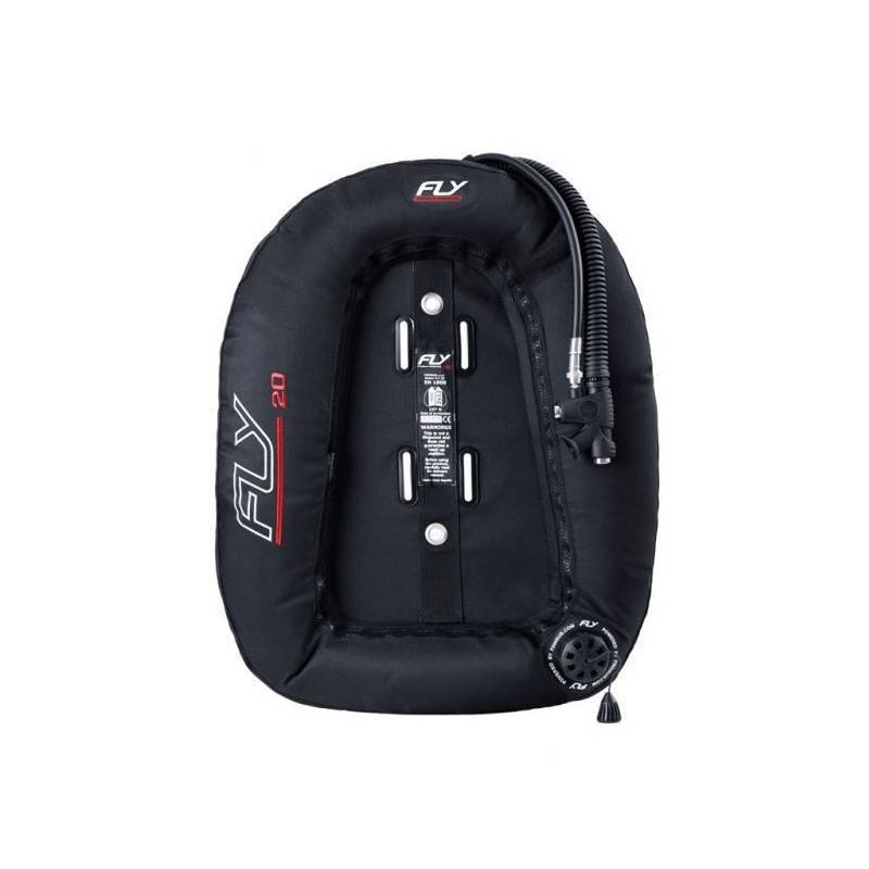 Le harnais du Fly confort 20D procure un confort maximal au plongeur, grâce aux épaulettes rembourrées et anatomiques qui répartissent le poids sur les épaules. Les sangles d'épaule s'ajustent facilement à tout moment. Le harnais dispose d'un total de sept aneaux D-ring en acier inoxydable, très résistants. Le plongeur peut accéder à deux backplates différentes. Un acier inoxydable de trois millimètres d'épaisseur avec un poids de 2,75 kilos et une plaque arrière en aluminium avec un poids de 750 grammes. Il est possible en option d'avoir une backplate de 6mm en INOX. Afin de stocker de façon sûre et simple un parachute et un reel, un réceptacle spécial est situé sur la plaque arrière à partir de laquelle on peut toujours tirer sa bouée.