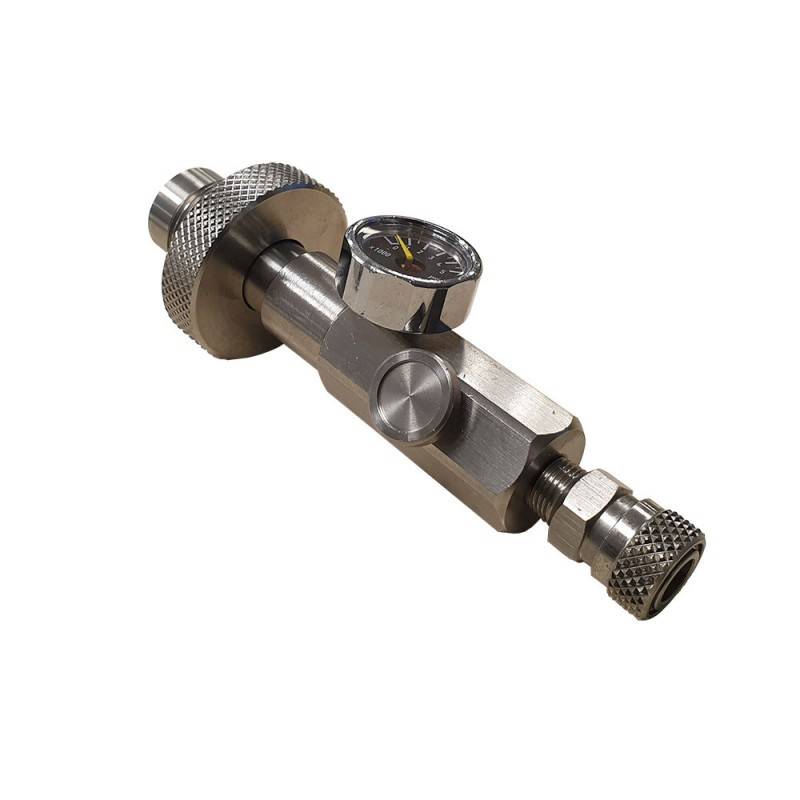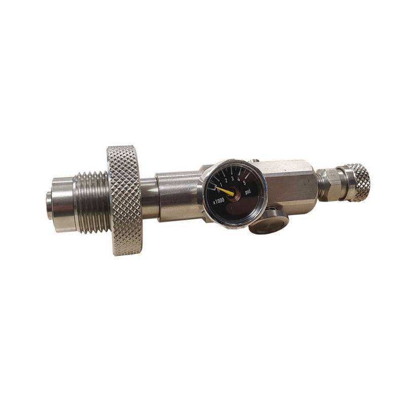 Equipé d'un raccord DIN inox, d'un mini manomètre 5000 psi et d'un raccord Quick Disconnect Inox.