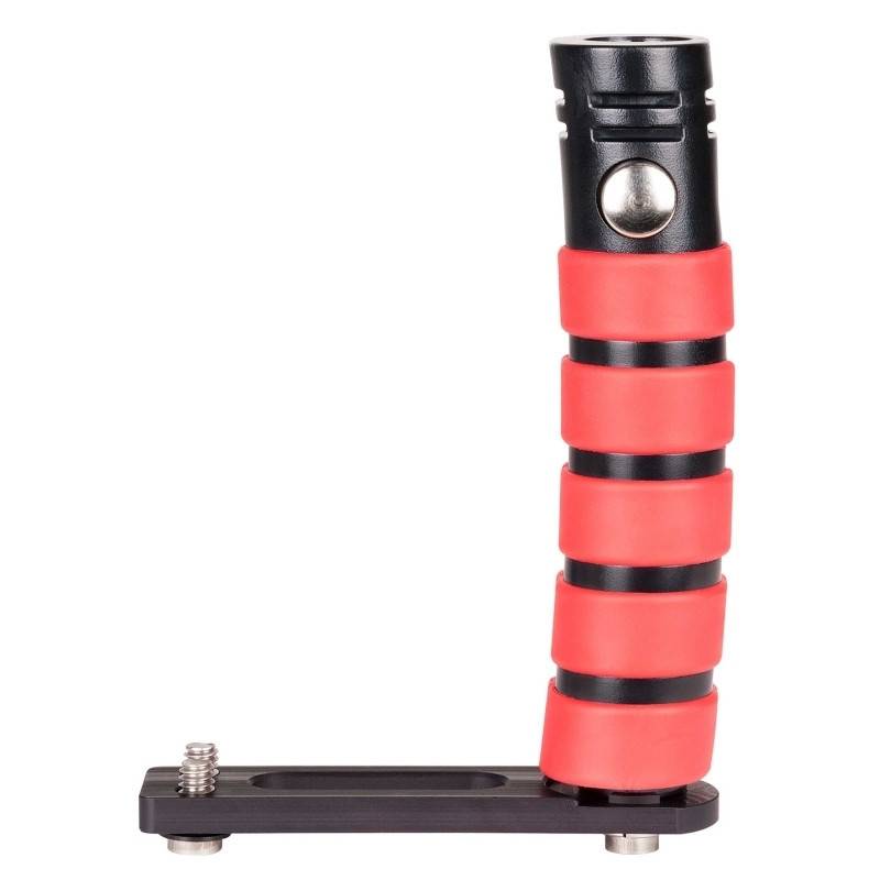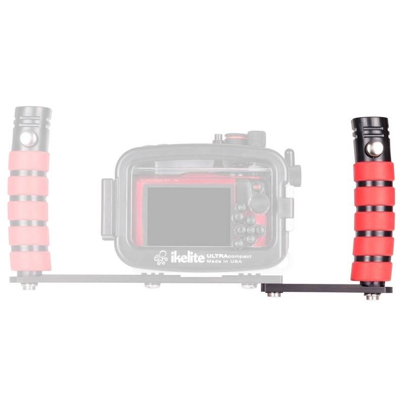 Platine et poignée droite Ikelite à grip rouge en aluminium.
