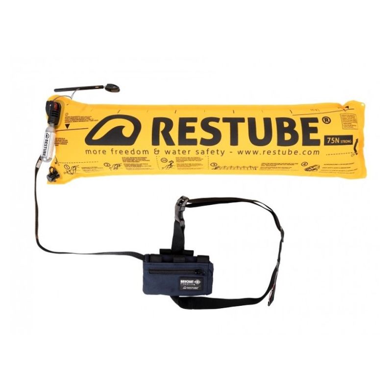 • Activation simple : conditionné dans une pochette compacte, le Beuchat Restube snorkeling se gonfle automatiquement en tirant sur une tirette. Cette action libère le CO2 contenu dans une cartouche de 10,9 grammes, permettant à la bouée de se déployer rapidement.