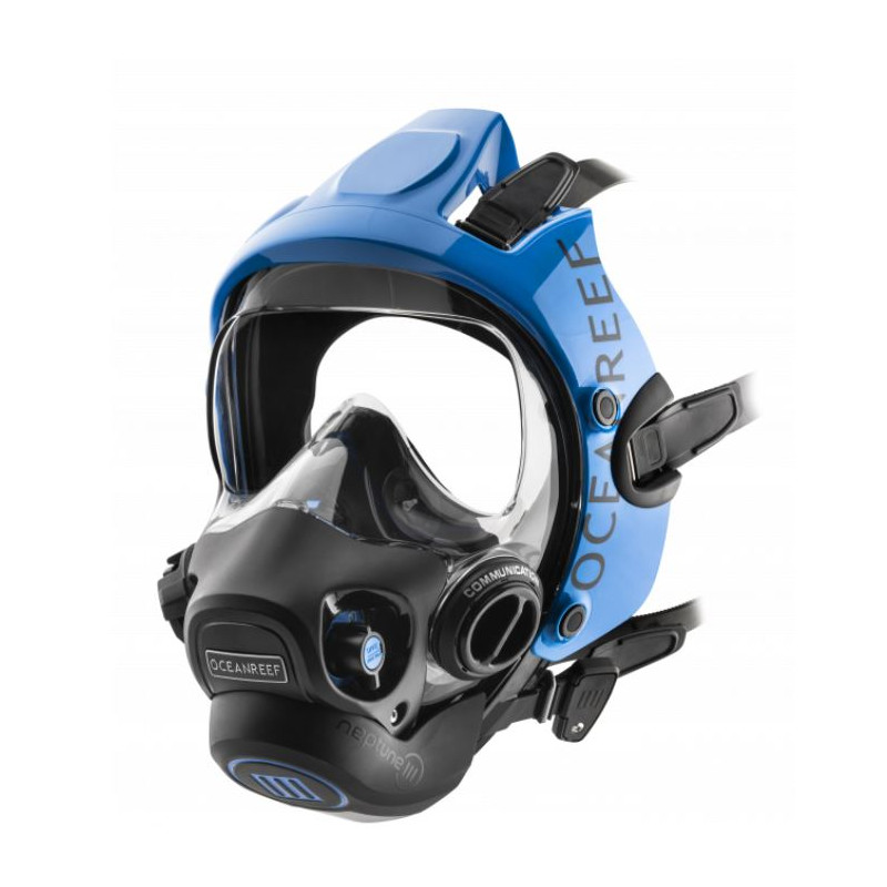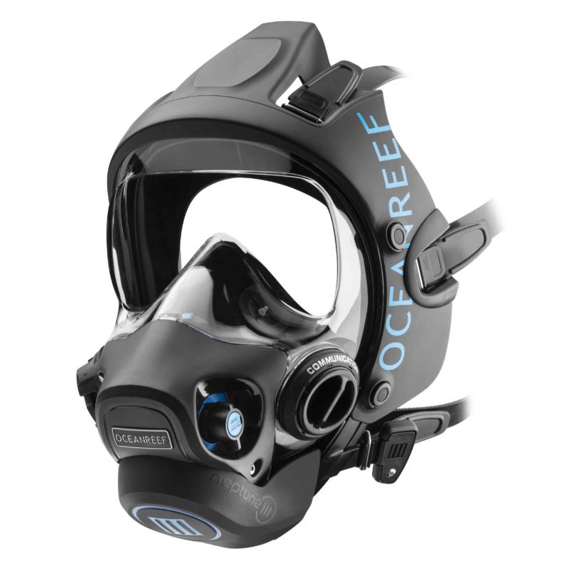 Le Neptune III System de chez Ocean Reef est un système de masque facial avancé conçu spécifiquement pour les plongées sous-marines. Il est possible d'adjoindre un système de communication intégral permet aux plongeurs de rester en contact constant sous l'eau (en option)