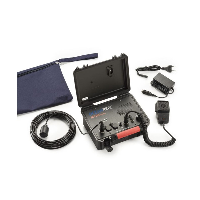 L'unité de communication Ocean Reef M105 avec deux canaux Émetteur-Récepteur est une solution avancée pour la communication sous-marine, offrant les mêmes caractéristiques que le M105 numérique, avec en plus un deuxième canal émetteur-récepteur.