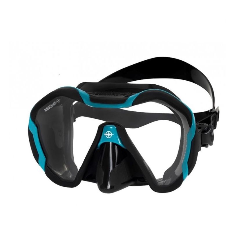 Le design spécifique du Beuchat MAXLUX EVO permet une vision panoramique avec une visibilité étendue vers le haut et une grande luminosité, la jupe du masque est spécialement conçue pour épouser les formes étroites du visage