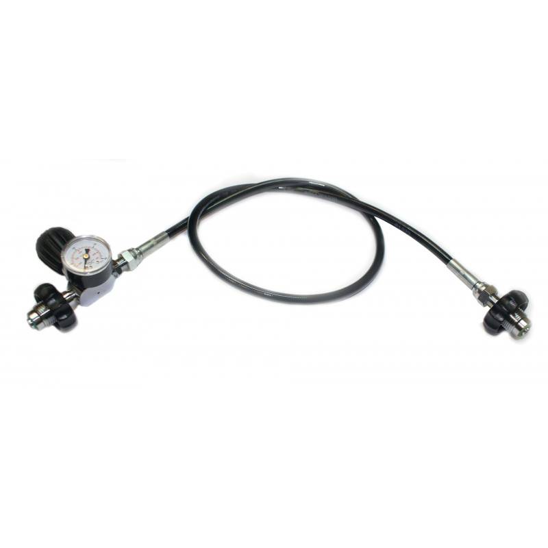 La lyre dispose d'un mini-manomètre 0-400bar. Le flexible est prévu fabriqué pour une utilisation jusqu'à 300bar. Sa pression d'éclatement est de 1400bar