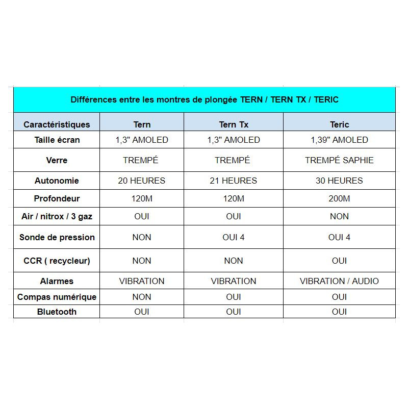 - Nitrox 3 gaz : commutable sous l'eau avec un support de décompression complet jusqu'à 100% d'O2