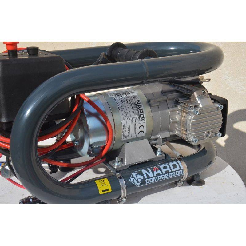 Le narguilé Esprit 12 V fonctionne à l'aide d'une simple batterie 12 volts. Comme tous les narguilés de plongée Nardi, c'est un compresseur sans huile.