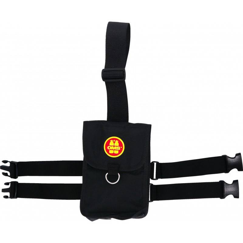 La poche est maintenue sur la cuisse par deux sangles réglables élastiques de 3,5 cm de hauteur, à boucle à clips rapide, et par une large sangle pouvant être passée à la ceinture de lestage ou à la ceinture ventrale du harnais pour un maintien total. Les passants permettent également de l'utiliser comme une poche classique, montée sur la ceinture