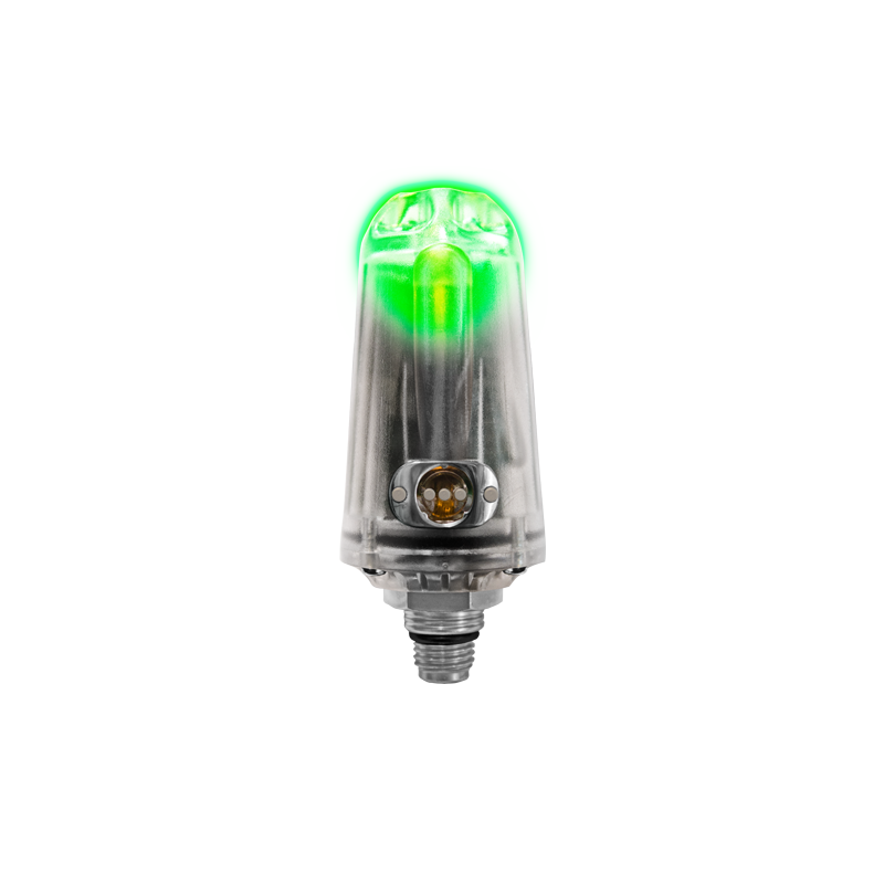 En effet, cet émetteur sans fil fournit aux ordinateurs Ratio compatibles, l’information de la mesure de pression dans la bouteille du plongeur. Mais surtout, il dispose d’une LED qui informe le plongeur du niveau de pression restant dans sa bouteille :