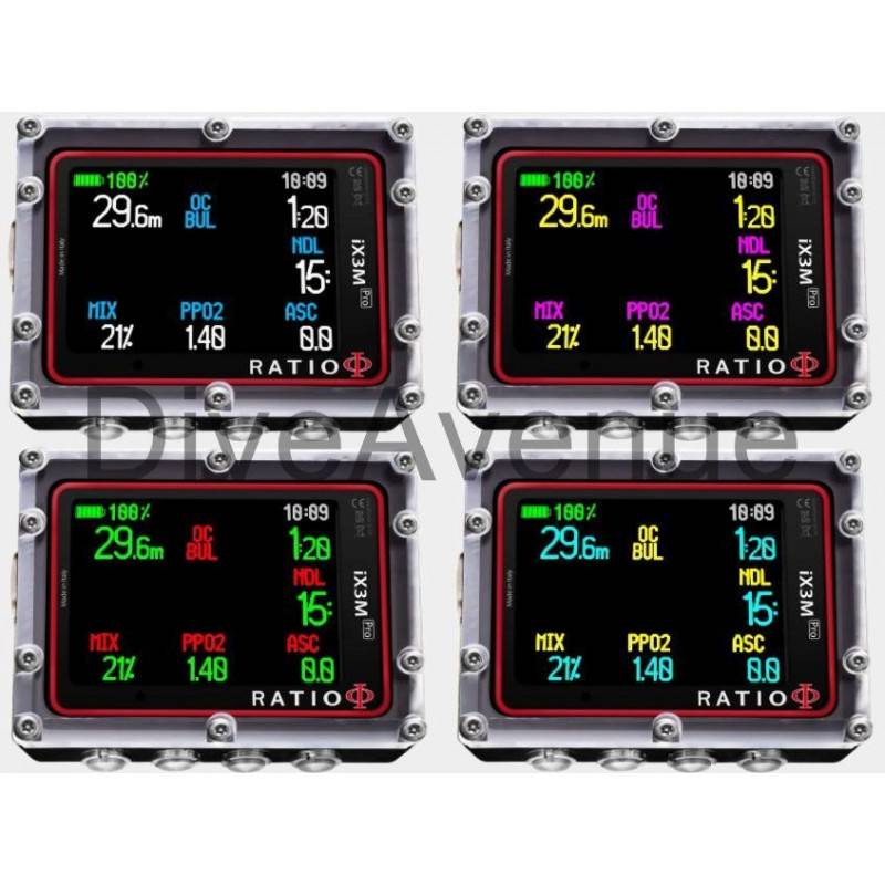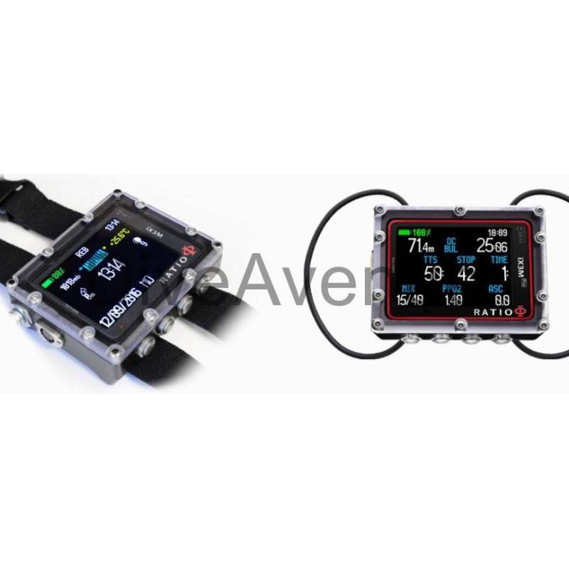 Il est compatible avec la sonde transmetteur de pression sans fil (en option) à 3x couleurs de Ratio qui tiendra compte de la consommation du gaz dans les paramètres de décompression.
