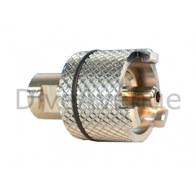 D'un côté se trouve le raccord rapide avec 3 ergots à 120°, de l'autre un taraudage femelle 38-24