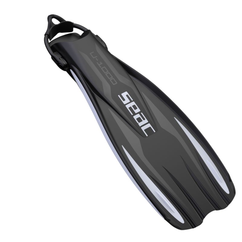 Grâce à leur voilure intérieure en caoutchouc, les palmes SEAC U-1000 offrent un effet « spoon » unique, maximisant la puissance de chaque coup de pied tout en réduisant l'effort nécessaire. Le chausson, doté d'une sangle élastique, est antidérapant et facilite le chaussage.