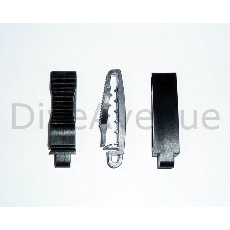 Facile à installer, vous n’avez pas besoin de défaire la ceinture comme sur les bloqueurs inox. Vous passez le bloqueur à l’endroit choisi. Par une pression sur le bloqueur, vous le clipez ainsi.