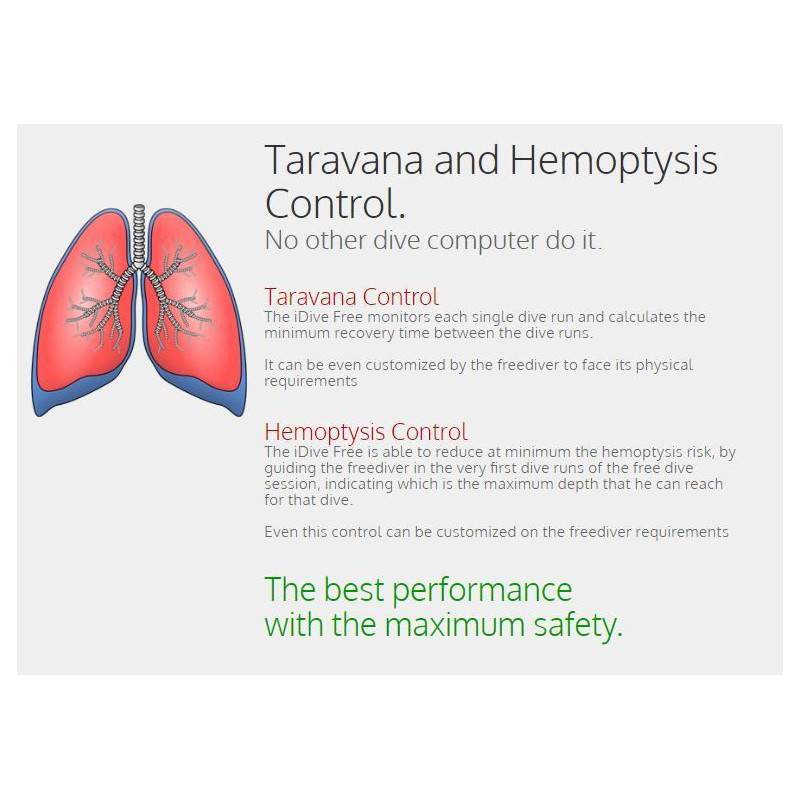 L’ordinateur montre d’apnée iDive Free Sport est le premier ordinateur à prévenir le syndrome de Taravana et l’hemoptysie en plongée en apnée.
