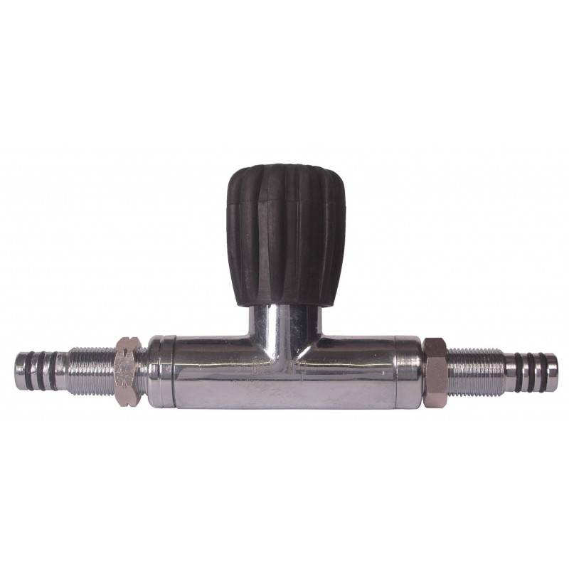Robinet d'isolation pour bi-bouteille de plongée à visser dans la robinetterie droite et gauche.