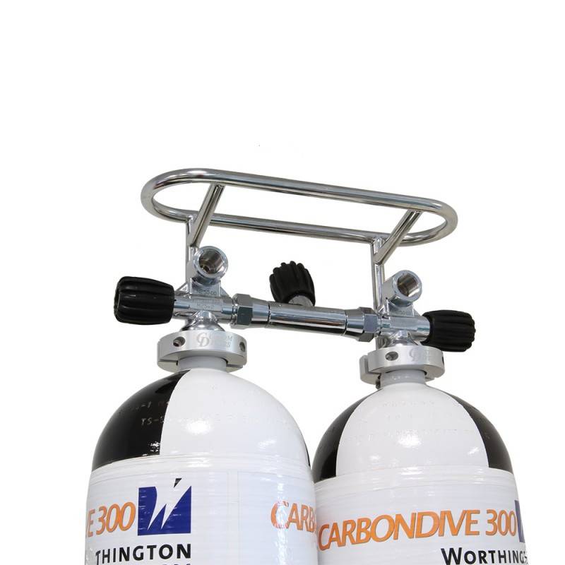 Protège des chocs les détendeur et les robinets des bi-bouteilles de plongée lors des plongées épave ou souterraines.