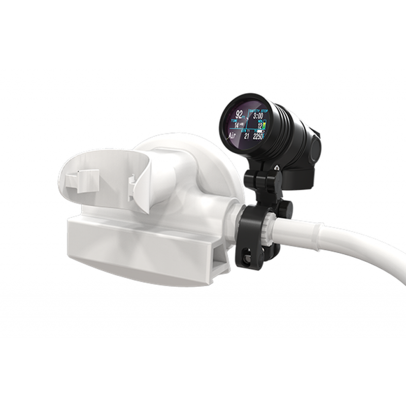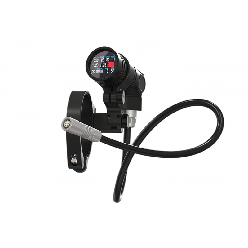 Le NERD 2 (Near Eye Remote Display) versio "prise FISCHER"de Shearwater est le premier ordinateur de plongée technique au monde à être relié directement à l'embout (DSV ou BOV) du recycleur. Ce dispositif révolutionnaire permet une visibilité directe pendant toute la plongée de toutes les informations importantes. Grâce à un micro-écran LCD et à une loupe, les données sont affichées comme sur un écran de 32 pouces à une distance d'environ 3,5 mètres. L'œil n'a pas besoin d'être centré pour lire l'information. Cela vous permet de basculer complètement entre l'environnement et l'affichage NERD 2. Si vous regardez droit devant, les numéros disparaissent de la vue et, dès que nécessaire, ils sont immédiatement visibles.
