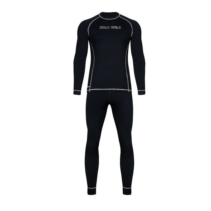 Le matériau utilisé pour la fabrication des sous-vêtements est un tricot polaire de haute qualité qui présente de très bonnes propriétés d'isolation thermique. Grâce à sa structure dense, il offre une excellente isolation contre le vent et le froid et maintient un microclimat sec et chaud sur la peau. Il possède des propriétés hydrophobes, c'est-à-dire qu'il ne retient pas l'humidité dans une proportion supérieure à 1 % de son poids, ce qui permet au tricot d'être toujours sec et doux au toucher. Les coussins d'air microscopiques dans la structure du matériau créent une isolation thermique, retenant la chaleur du corps. La sueur dégagée pendant l'exercice est absorbée par la couche intérieure du tissu tricoté, tandis que la couche extérieure évacue l'humidité accumulée dans l'environnement, ce qui permet à la peau de rester sèche et de respirer naturellement.