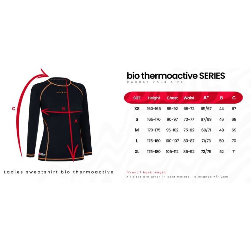 Les vêtements de la série BIO THERMOACTIVE contiennent des ions positifs Ag + argent, grâce auxquels les bactéries ne passent pas du tissu à la peau. Cela élimine le risque d'allergies et la formation d'odeurs désagréables. Les ions Ag + argent agissent comme un facteur bactériostatique - ils équilibrent le niveau de la flore bactérienne sur la peau.