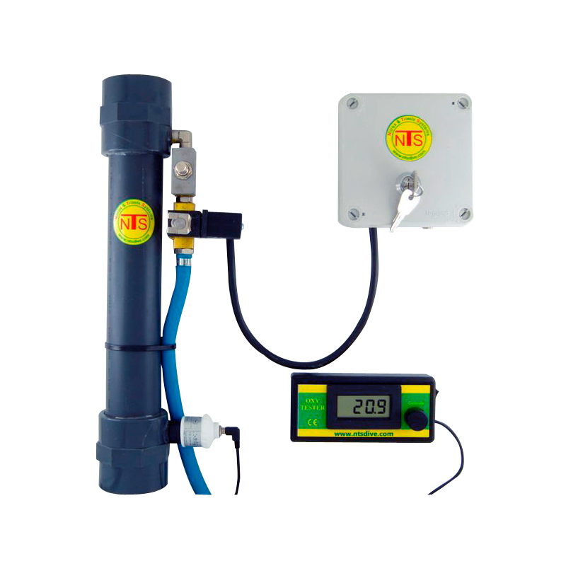 Le stick Nitrox SECUBLENDER est une installation basique pour réaliser un mélange Nitrox, et qui va dans le sens de la sécurité. En effet, le dispositif inclue une électrovanne qui est couplée au compresseur. Si le compresseur s'arrête, l'électrovanne coupe immédiatement l'arrivée en oxygène.