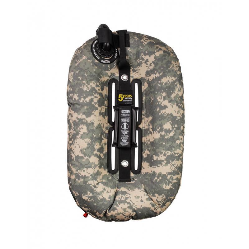 Le Donut 13 TREILLIS de TECLINE se décline en plusieurs couleurs, ici couleur treillis. Ce petit volume sera idéal pour le voyage avec ces 13kg/29Lbs de flottabilité.